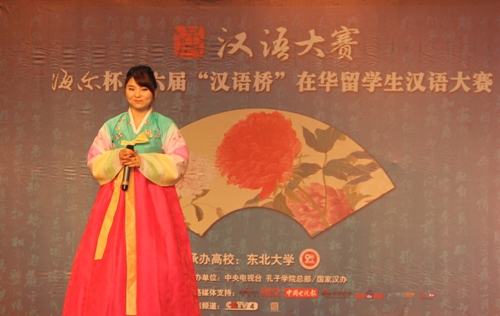 第六届“汉语桥”活动的举办,恰逢东北大学90年校庆之际,对我校来说可谓锦上添花,喜上加喜。我校的选手也都通过不同的形式为90年校庆献上了礼物。来自朝鲜的金仙京,以一段激情澎湃的“中国梦”演说为母校90周年华诞献礼。