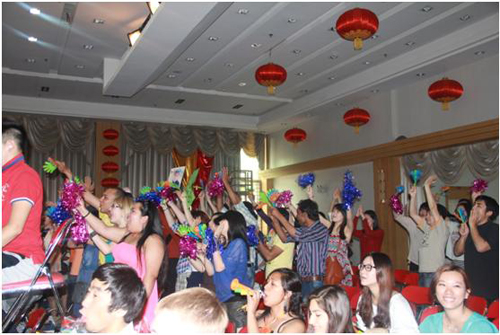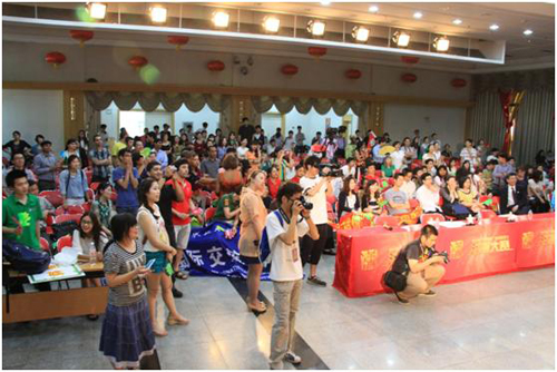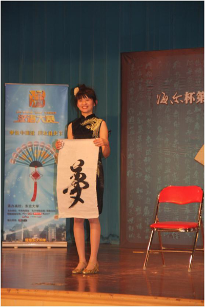 评委们已经就座了。汉语大赛就要开始了!拉拉队员们,为你们的朋友加油吧!评委老师是来自沈阳日报和辽宁电视台的两位媒体老师以及东北大学文法学院张雷院长。