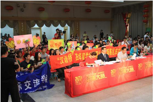 “各部门注意,各小组注意,汉语大赛马上开始!”“没问题,我们已经准备妥妥的了!”6月1号,由东北大学承办的第六届“汉语桥”在华留学生汉语大赛在大学生活动中心拉开帷幕。来自东北大学、沈阳师范大学、辽宁大学、辽宁中医药大学、沈阳工业大学和渤海大学的39名留学生齐聚于此,用汉语对擂,用才艺比拼。
