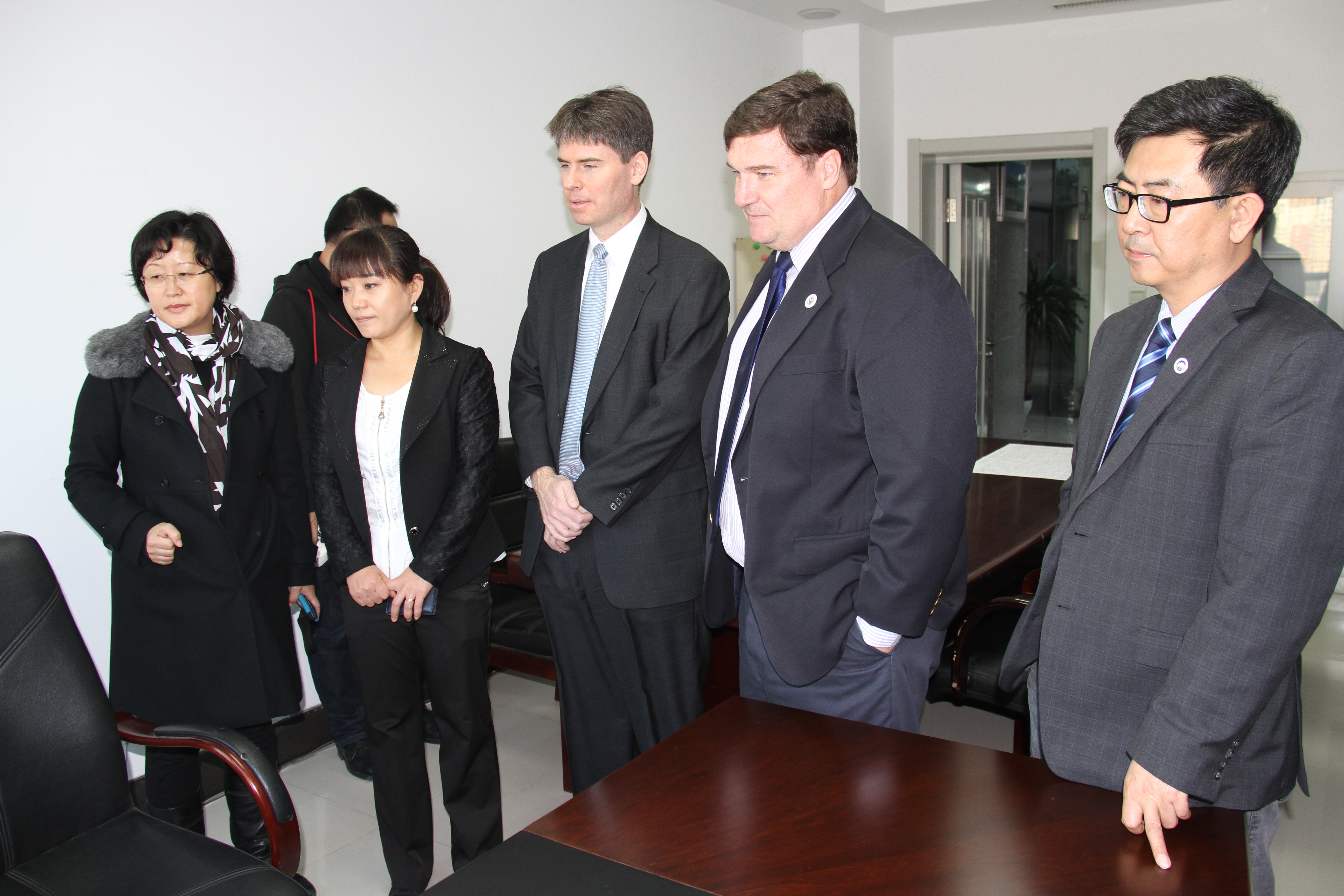 结束会见后,Scott Weinhold总领事一行参观了东北大学美国文化中心,并观看了东北大学和美国阿巴拉契亚大学合作的纪录片。