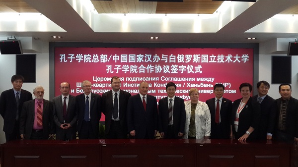 12月6日,我校与白俄罗斯国立技术大学孔子学院合作协议签约仪式在北京国家汉办/孔子学院总部举行。该合作协议的签署标志着我校首个孔子学院正式成立。国家汉办主任、孔子学院总部总干事许琳,白俄罗斯国立技术大学校长Boris M.Khroustalev、副校长Yury Aliakseyeu,我校校长丁烈云,校长助理吴劲松和国际交流处、外国语学院有关负责人出席签约仪式。