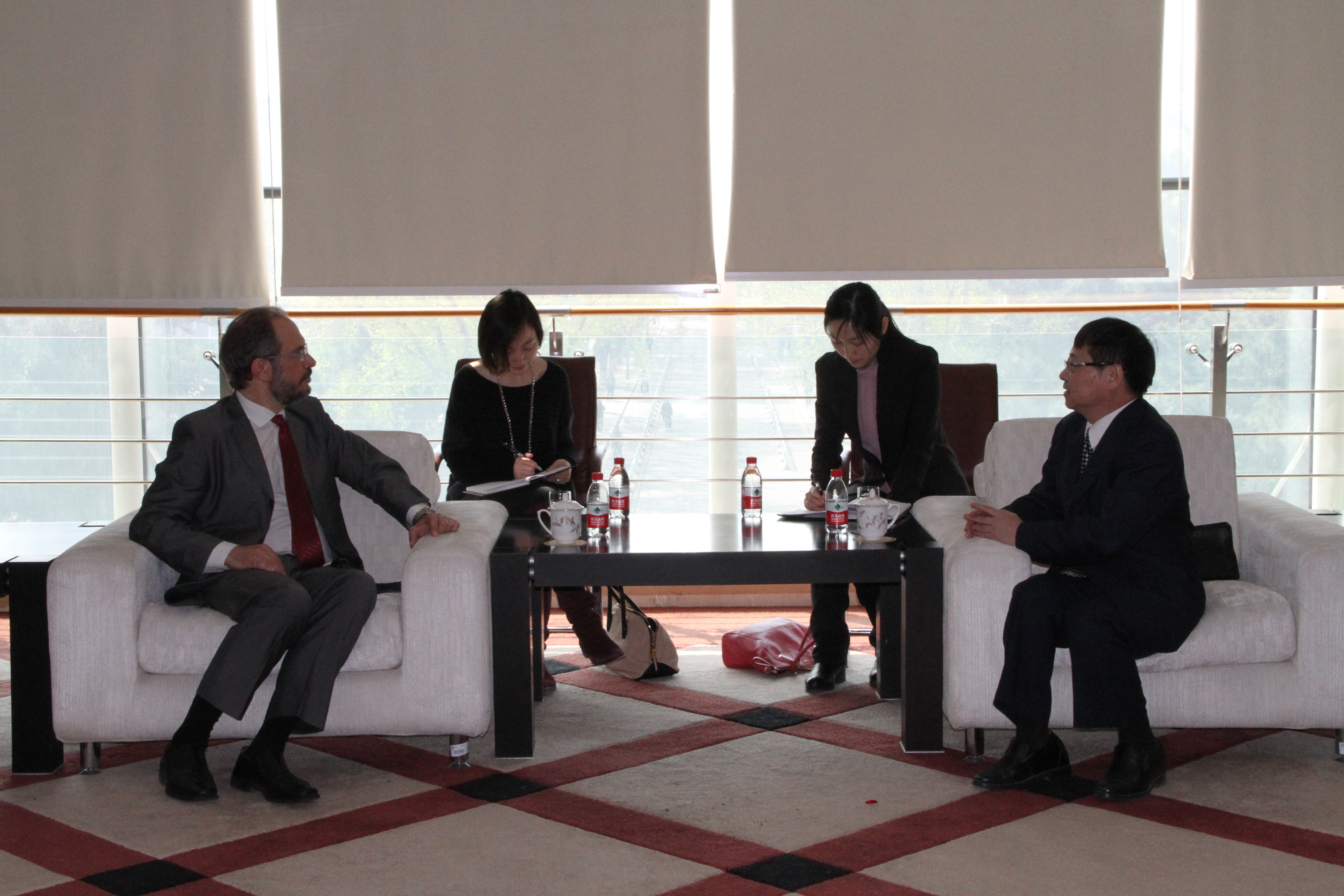 王福利代表东北大学欢迎Joel Courtois来访,并简要介绍了东北大学的基本情况。他表示,东北大学是我国首批985项目和211项目大学,借助“2011计划”等平台在过去的20年有快速的发展,材冶、机械等传统学科和信息、软件等新兴学科均衡发展。王福利提议两校以学生联合培养项目为基础,将双方合作扩大到教学理念办学模式分享及科研合作等更多领域。