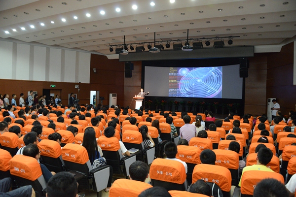 会见结束后,乔治•斯穆特在科学馆201室为东北大学师生作了以“在宇宙中飞翔”为主题的演讲。演讲中,乔治•斯穆特介绍了宇宙的形成、宇宙的设计、宇宙的发展等内容,并讲解了相关研究手段及COBE(Cosmic Background Explorer 宇宙背景探测)卫星等研究工具。乔治•斯穆特认为,其研究能够帮助人们从新的视角看待地球,了解保护地球的重要性,从而更加珍爱地球。演讲结束后,乔治•斯穆特与师生就关注的天体物理学及宇宙学的意义等问题进行了交流。